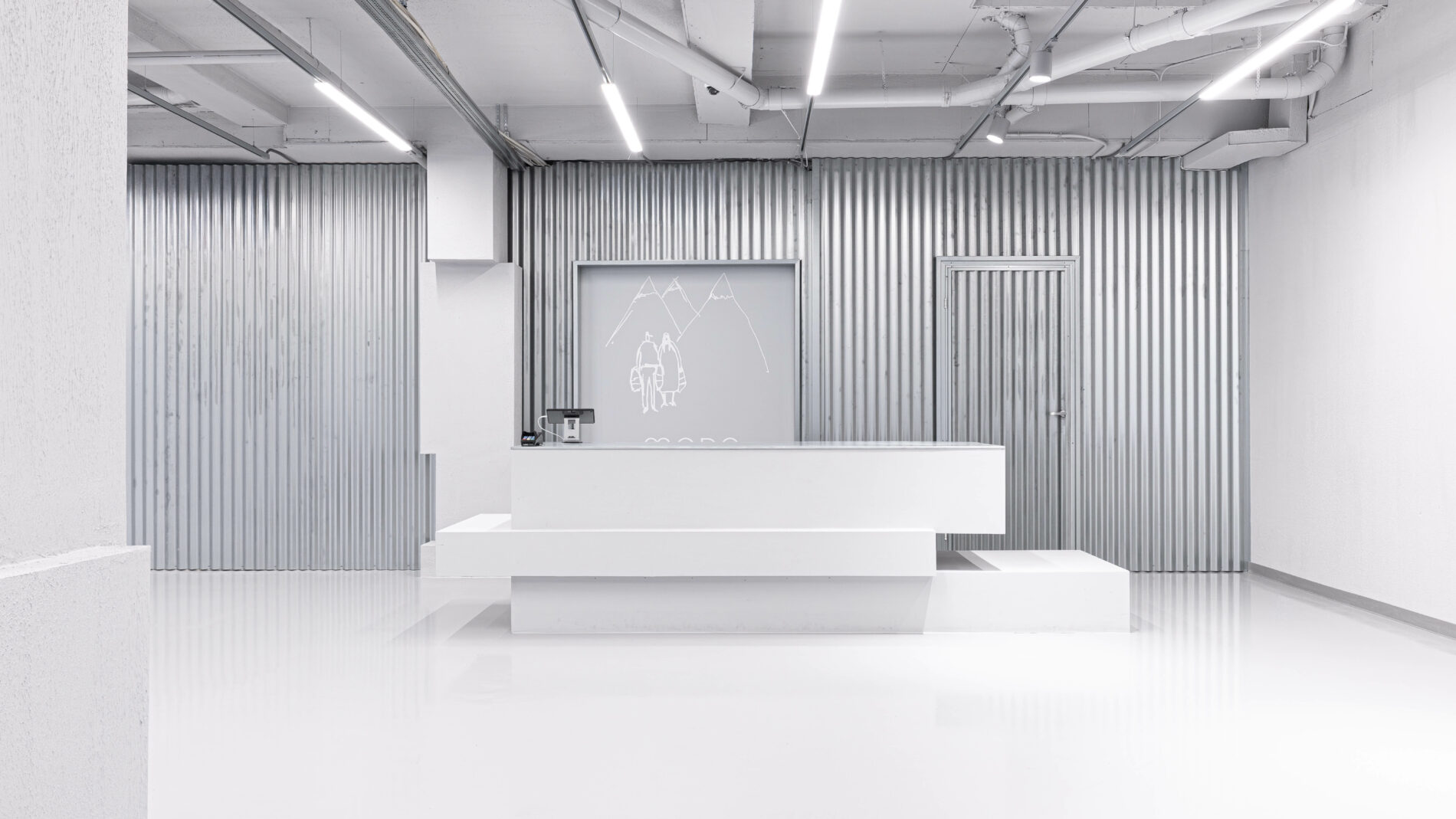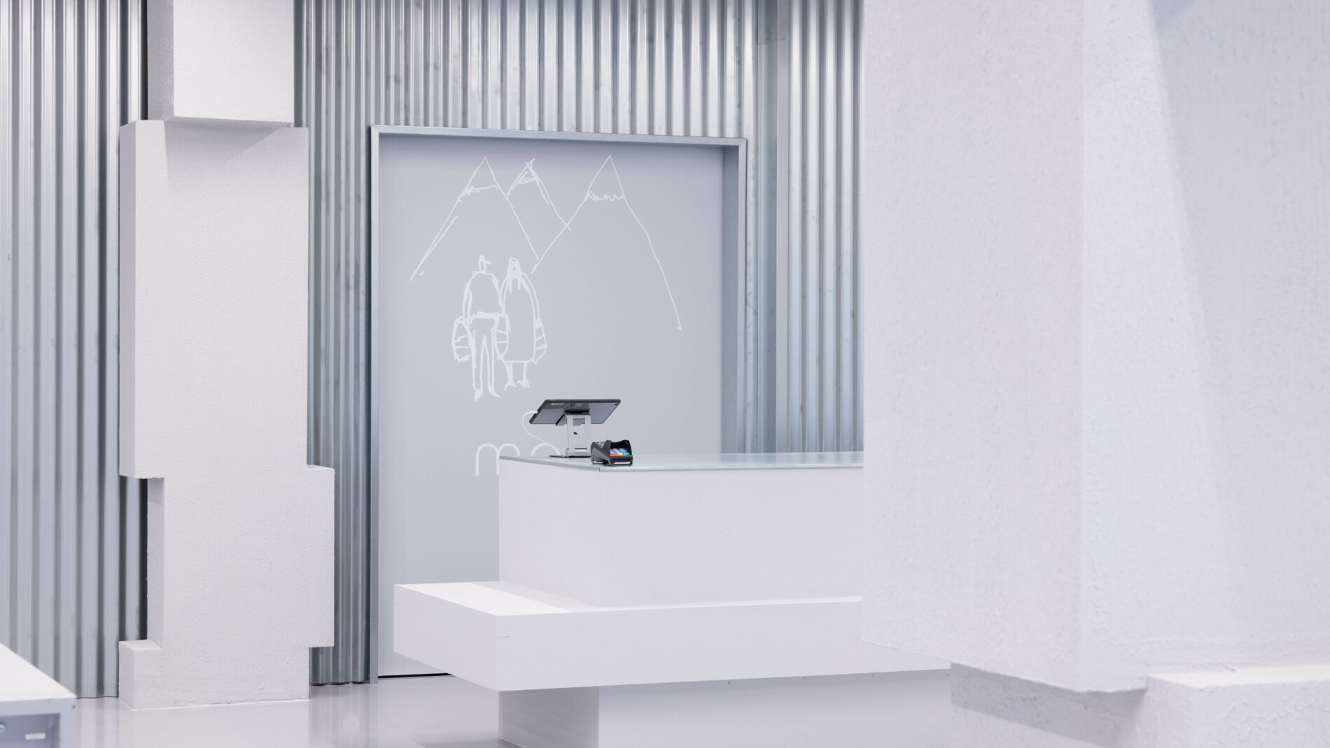 Retail space in Ålesund shaped by sculptural, in-situ-formed blocks and a restrained, winter-inspired material palette.